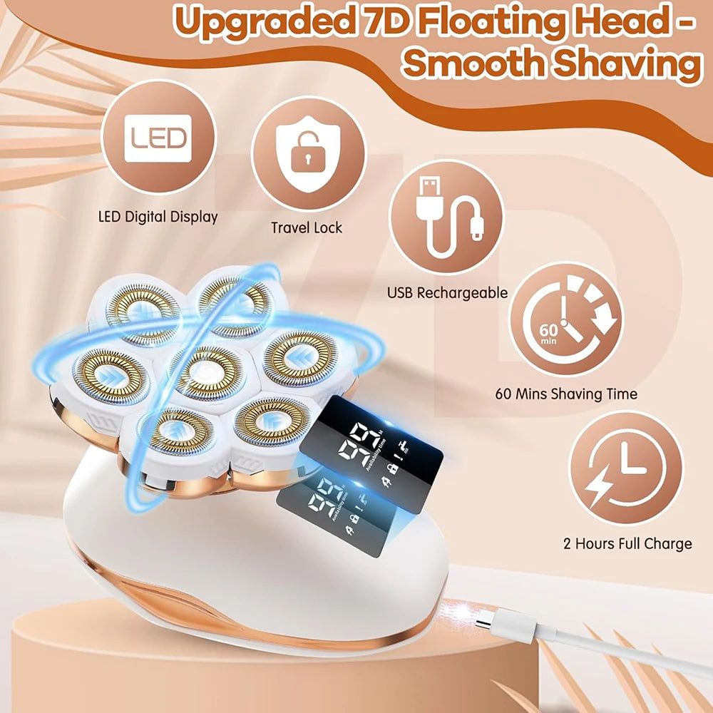 Experience a closer, contour-hugging shave with the Electric Razor for Women featuring 7D floating blades and a 5-in-1 bikini trimming kit.
